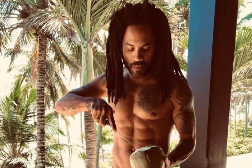 Кравиц на новата фотографија сече свеж кокос, а во преден план се неговите стомачни мускули кои изгледаат нереално. Палмите во позадина ја направиле целата сцена уште попривлечна, а пријателите и обожавателите на славниот пејач биле импресионирани од неговиот изглед.