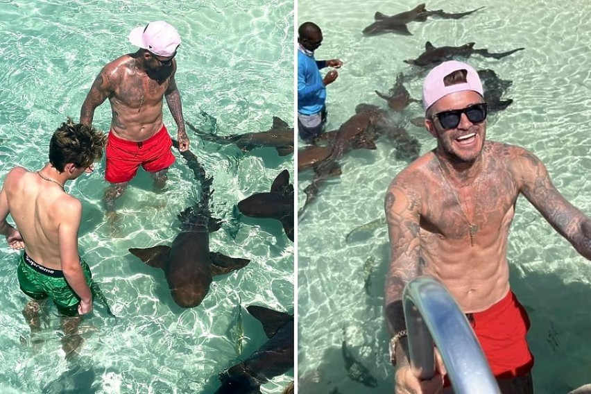 Дејвид Бекам во неделата поминувал време со својот син Круз во необично друштво - со ајкули.