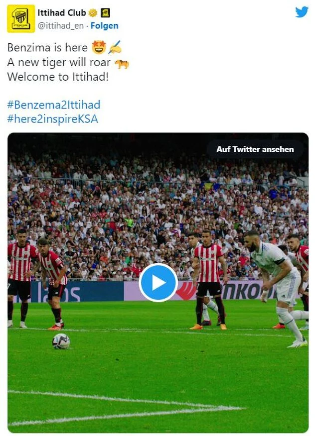Имено, Бензема бил претставен со видео снимка, а саудискиот клуб кој е познат како „Тигри“ напишал:
