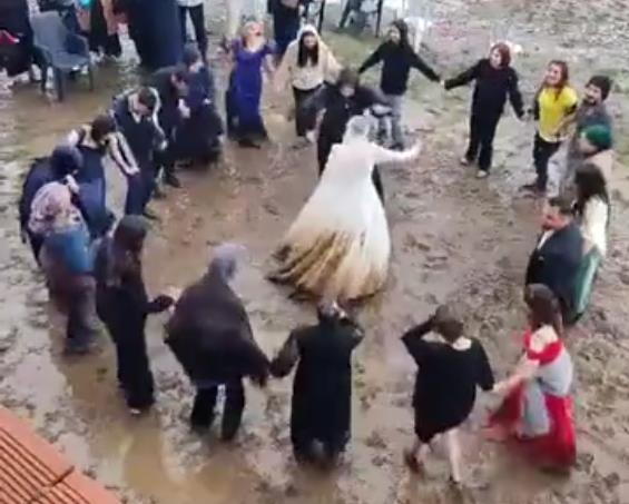 Токму таква сцена се појави на ТикТок, каде беше објавена свадба организирана директно во каллив двор. Дождот истура како од ведро небо, дворот претворен во полигон за off-road трки, но сватовите? Не само што не се поколебале — туку играле оро како да освојуваат злато на Олимписки игри!