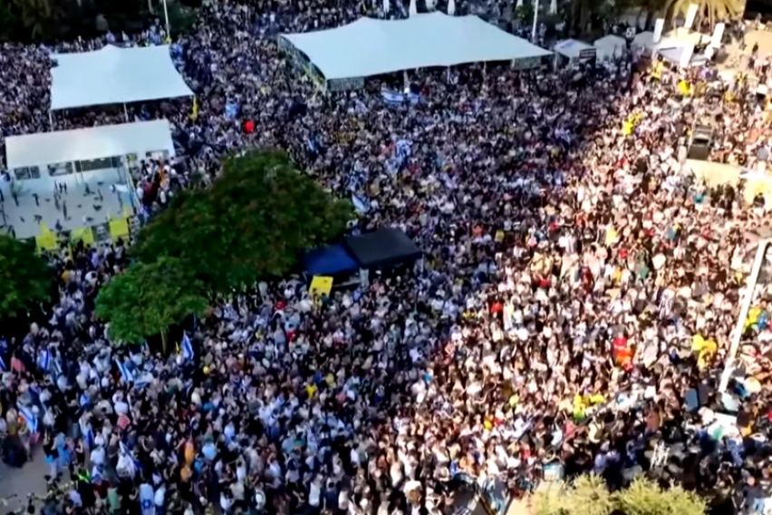 Преносот во живо од нивното ослободување и средбата со нивните семејства беше емитуван на големи екрани околу плоштадот, пишува „Гардијан“. Плоштадот е центар на национална кампања за нивно ослободување откако 250 Израелци беа киднапирани на 7 октомври 2023 година, во ненадеен напад на Хамас врз јужните израелски заедници, при што загинаа 1.200 луѓе и започна конфликтот во Газа.