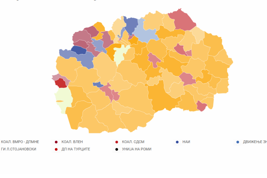 Иако засега се обработени мал број од гласовите, мапата е обоена во портокалова боја.