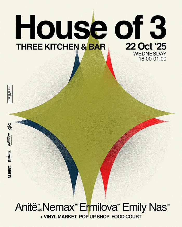 Утре (22 октомври) ќе се одржи дванаесетчасовен мултимедијален фестивал „Хаус оф Три“ (House of 3) на три сродни и препознатливи локации во центарот на Скопје — во „Три Кичен&Бар“ и во ноќните клубови „Клуб 1212“ и „Станица 26“.