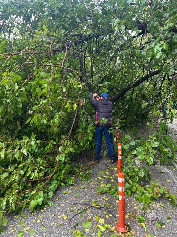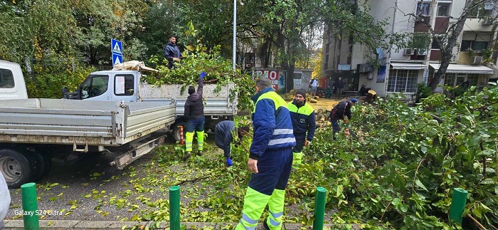Општина Центар информира дека во моментов екипите на ЈП „Паркинзи на Општина Центар“ и ЈП „Паркови и зеленило“ работат на отстранување на двете паднати дрвја во близина на ООУ „Киро Глигоров“.