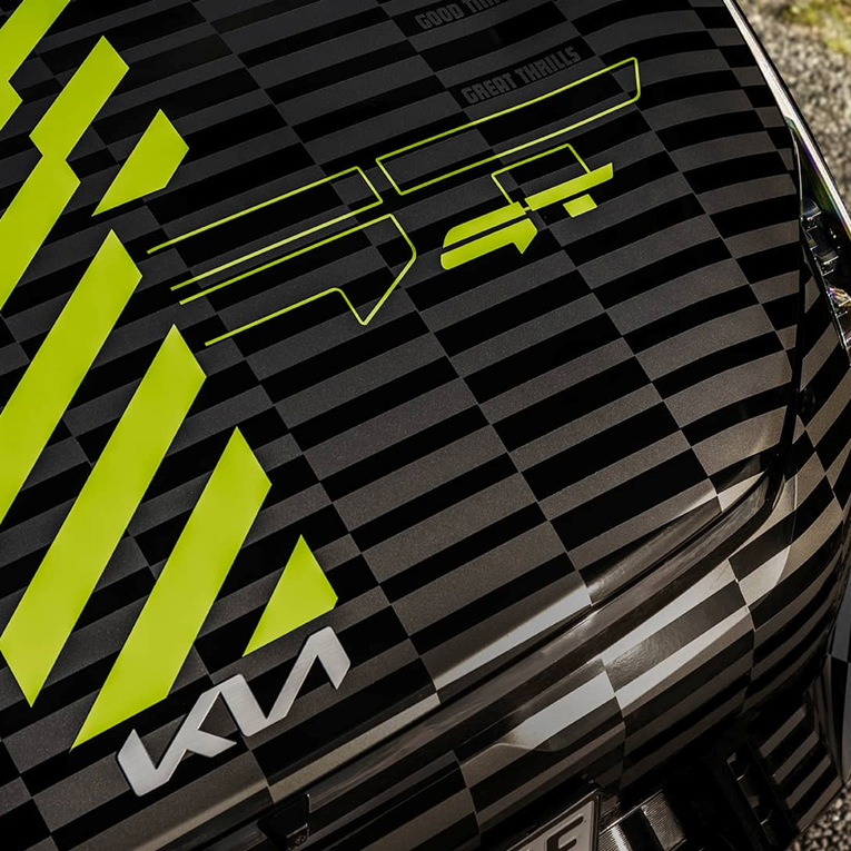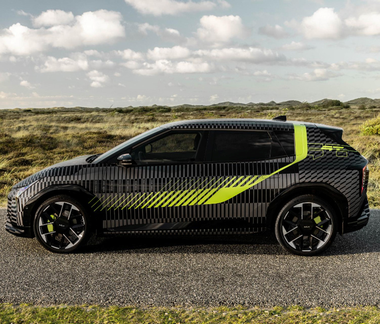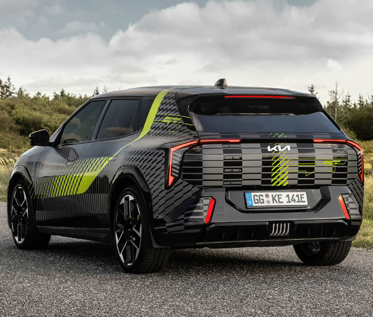 Од страна, вниманието го привлекуваат специјално дизајнираните алуминиумски фелни и неонски обоените сопирачки клешти, а одзади — GT дифузер со карактеристични централни вертикални LED светла, инспирирани од обновениот „EV6 GT“.