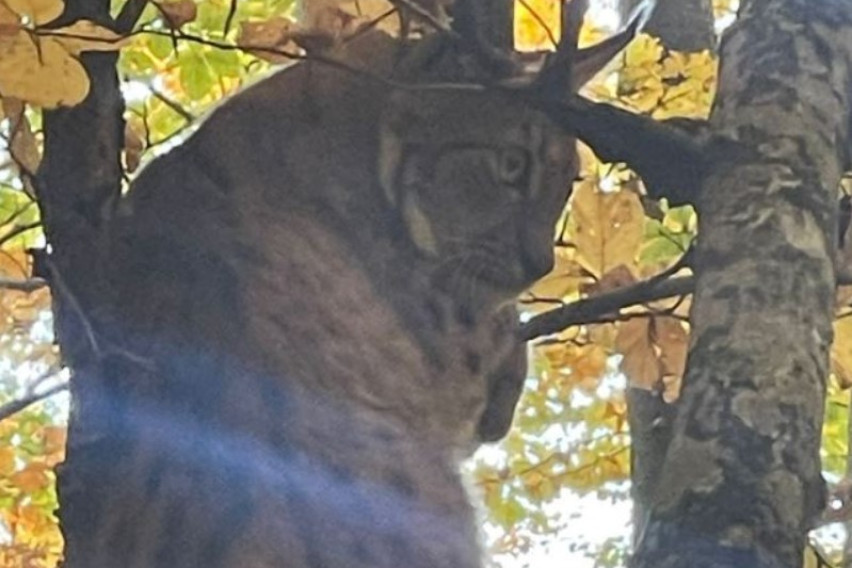[ВИДЕО] Рис снимен во Кичево: Најголемата дива мачка на Балканот забележана качена на дрво