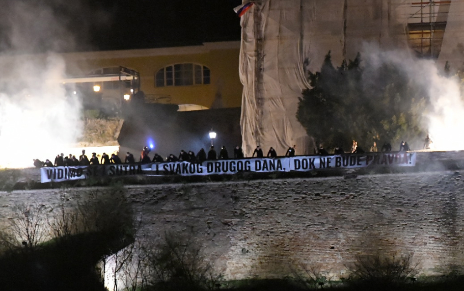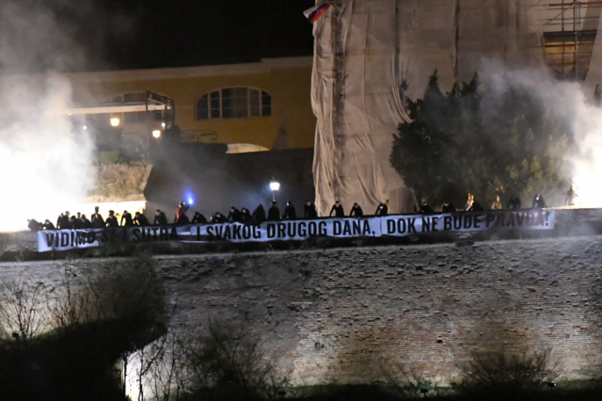 Studenti su na Petrovaradinskoj tvrđavi razvili transparent na kom piše "Vidimo se sutra i svakog drugog dana dok ne bude pravda". pic.twitter.com/7l4KseYuHS