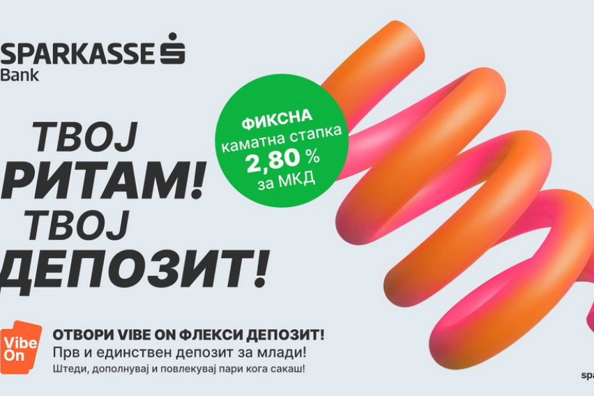 Шпаркасе Банка АД Скопје го претставува првиот депозит за млади на пазарот VIBE ON Флекси депозит – нов, модерен и единствен депозитен производ наменет за млади од 18 до 28 години, создаден за генерацијата што сака слобода, флексибилност и контрола над своите финансии.