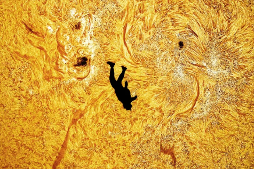 Извесен астрофотограф „улови“ спектакуларен скок на падобранец, совршено усогласен со огнената површина на Сонцето, што создало впечаток дека авантуристот „паѓа“ низ вакуумот на вселената.