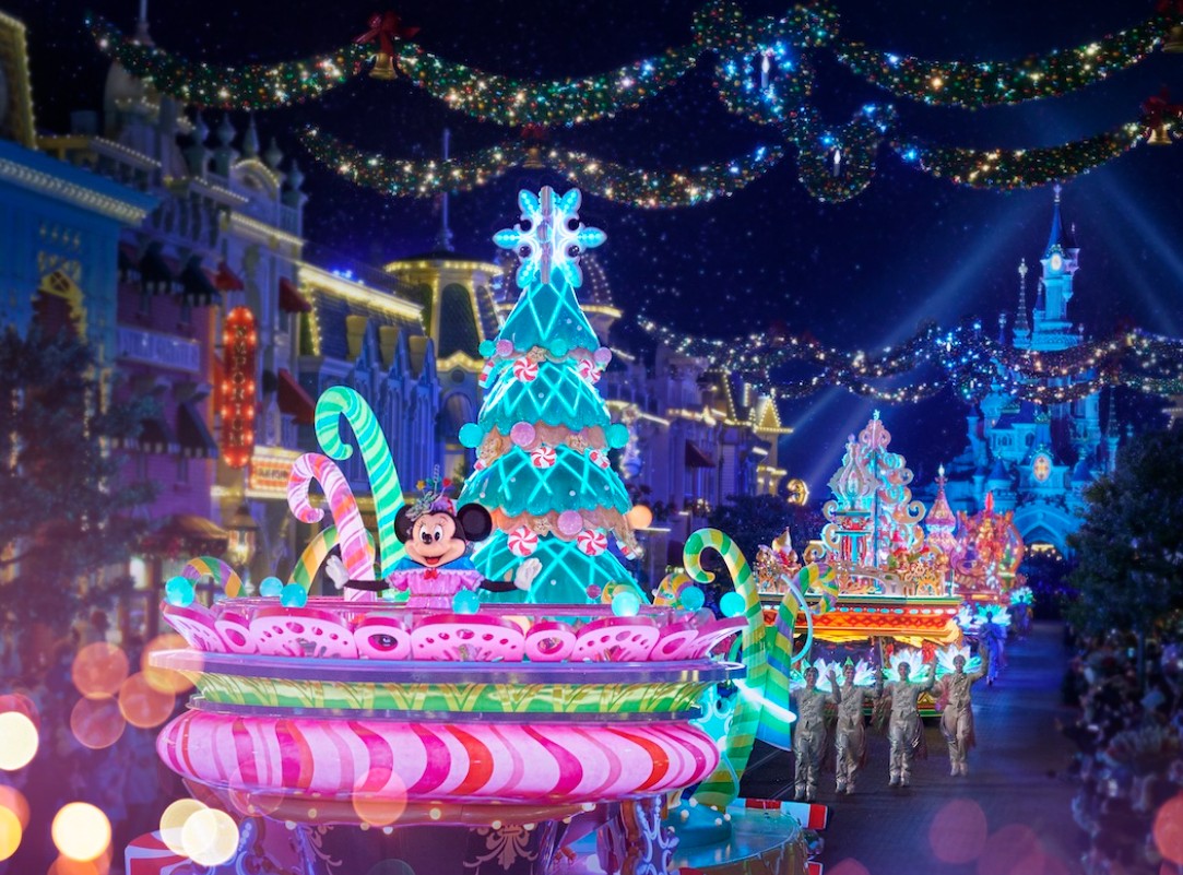 Во пресрет на Божиќ ќе најдете џиновската елка, магичните светла на Мики Маус, празничните паради, бројните празнични претстави, па дури и концертот „Let’s Sing Christmas“ каде што познати ликови од Дизни пеат препознатливи божиќни песни.