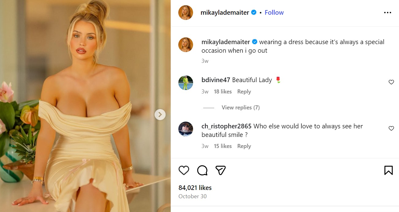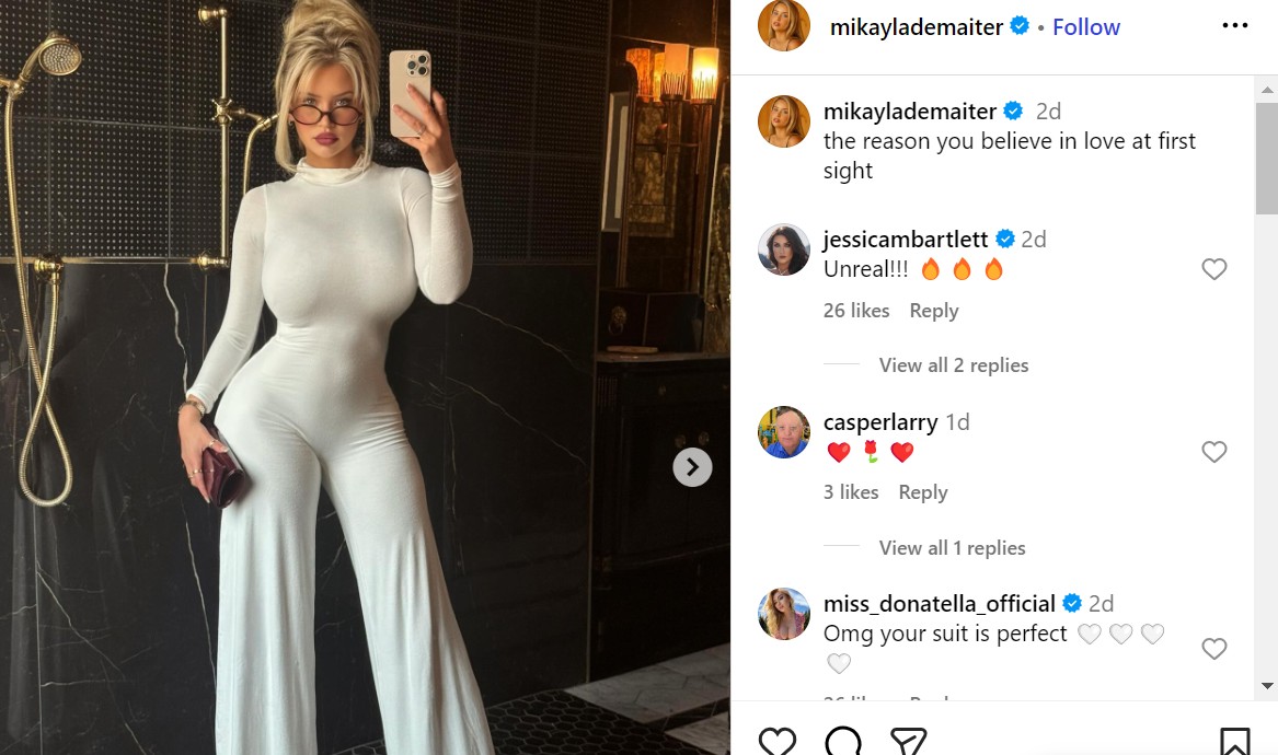 Веднаш по објавувањето следуваа бројни реакции на обожавателите, а профилот на убавата Микаела беше преплавен со комплименти.