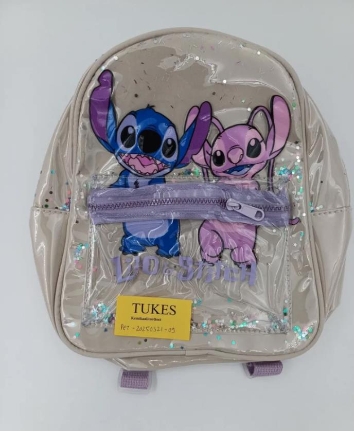 Како што се наведува во соопштението, станува збор за ранец со мотиви на анимираните ликови Лило и Стич. Производот се продава по пат на интернет, особено преку платформата „Temu“ (идентификатор на производот: 601100079730305, датум на произведување: 06.02.2025).
