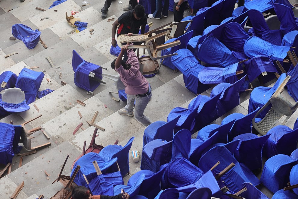 Локалните медиуми објавија дека полицајците морале да користат палки за да ја растераат толпата. Сцените на хаос вклучувале кинење транспаренти, кршење звучници и судири со обезбедувањето.