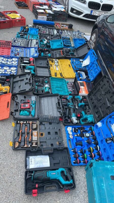 Во вториот настан, полициските службеници сопреле патничко возило “мерцедес” со скопски регистарски ознаки, управувано од Б.С. и при преглед на возилото биле пронајдени 174 парчиња разновиден рачен, батериски и електричен алат без документација. Возилото и алатот се одземени, а лицето е лишено од слобода.