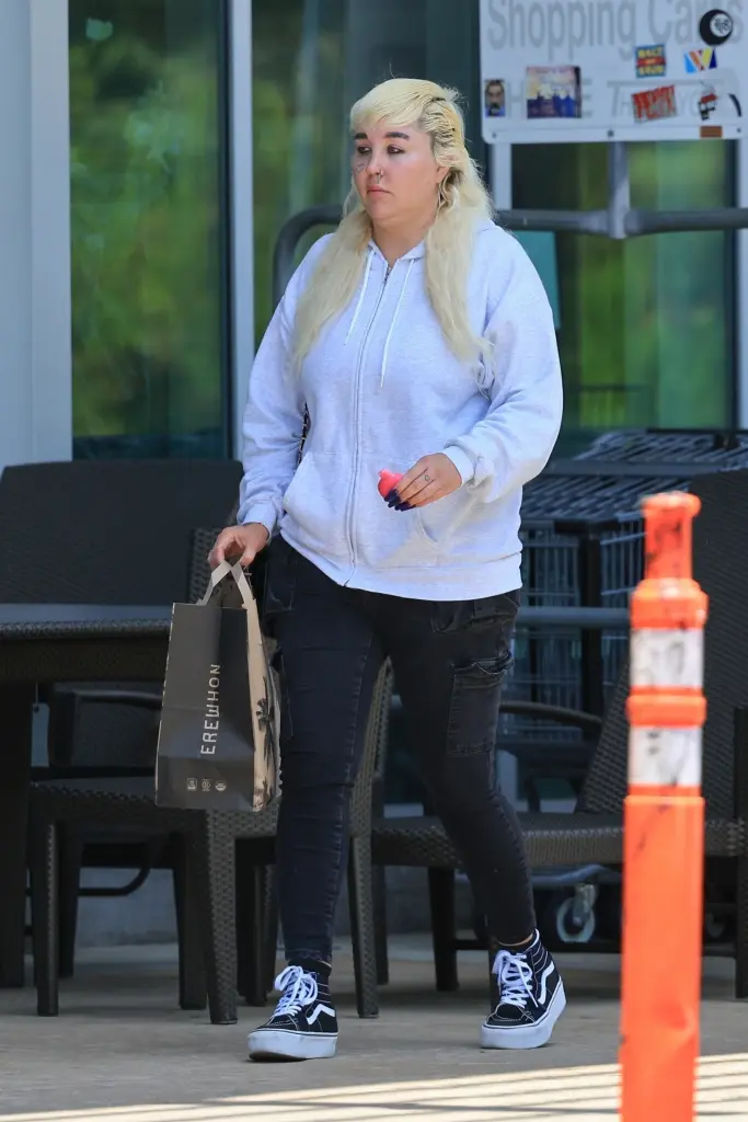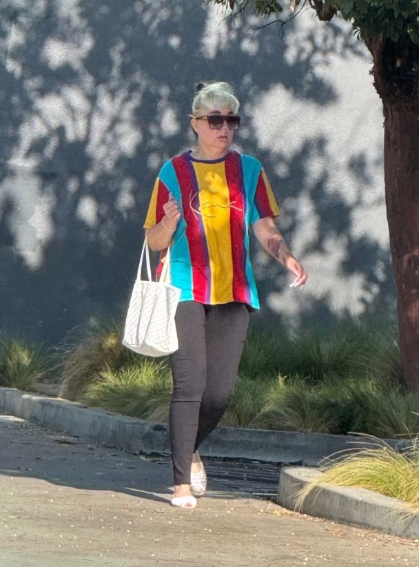 За време на прошетката таа носела шарена маица и тесни фармерки, како и екстремно долги нокти кои се чини дека сега се нејзин заштитен знак.