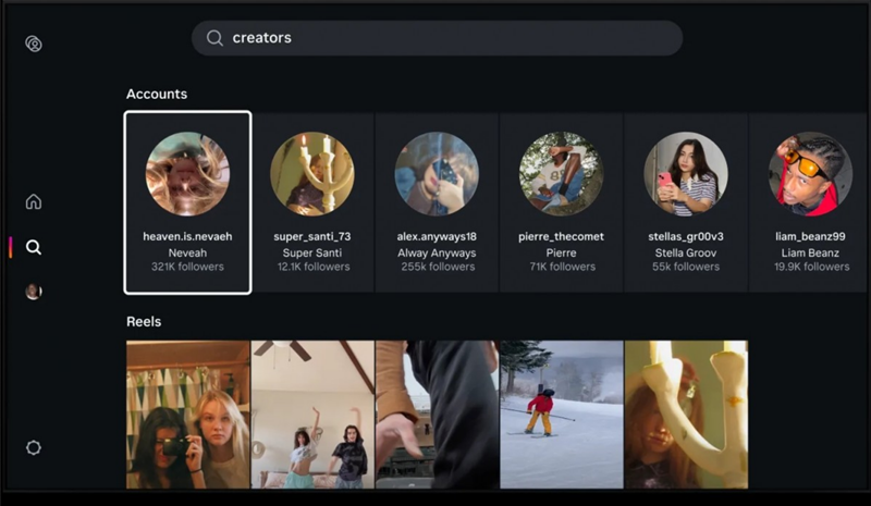 „Instagram for TV“ им овозможува на корисниците да додадат до пет профили или да креираат посебен профил наменет исклучиво за ТВ-искуството. Содржината од „Reels“ е организирана во посебни канали, во согласност со интересите на корисниците, што го олеснува прегледот и откривањето нови видеоклипови.