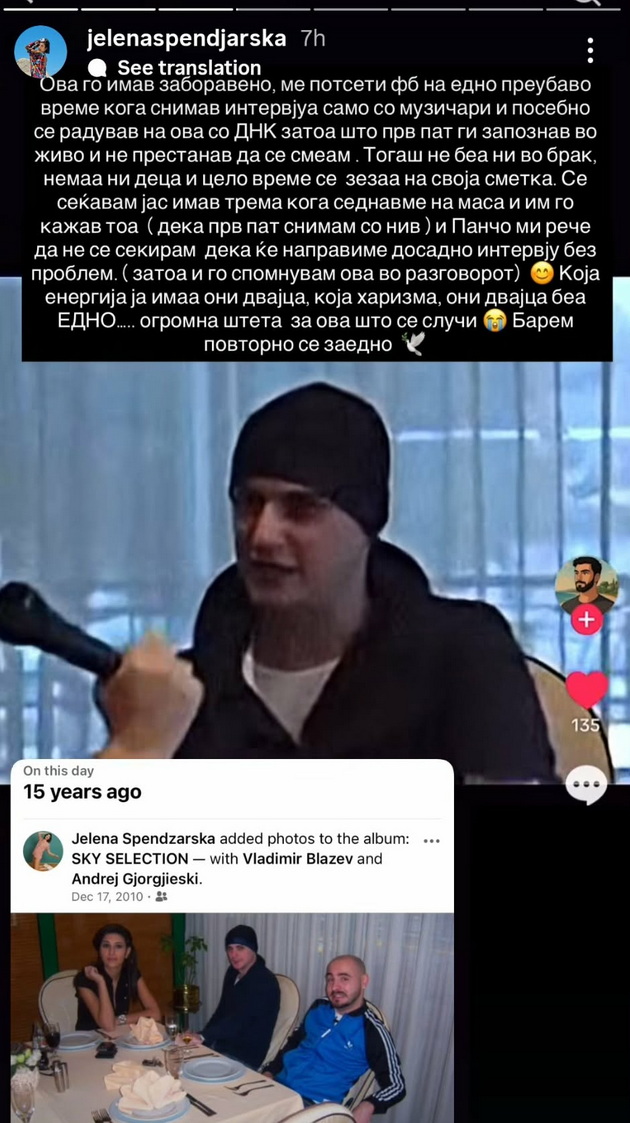„Ова го имав заборавено, ме потсети Фејсбук на едно преубаво време кога снимав интервјуа само со музичари и посебно се радував на ова со ДНК затоа што првпат ги запознав во живо и не престанав да се смеам“, напиша Јелена.