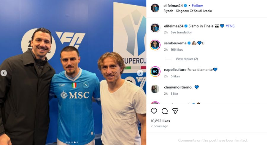 Во ситуација кога можеше да располага со Лоботка и МекТоминеј, Конте го играше Елмас на поприродна позиција во офанзивниот дел од системот и Македонецот одигра навистина добар натпревар, а полуфиналето во Ријад му послужи како добра шанса да овековечи еден момент со две легенди.