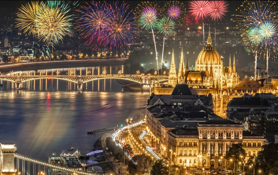 Централната прослава се одржува на плоштадот „Вересмарти“, но вистинското искуство е на брегот на Дунав. Глетката на огномет што се издигнува над зградата на Парламентот и Мостот на синџирите, што се рефлектира во реката, се смета за една од најубавите во Европа. Совет: Наместо скапи вечери, уживајте во уличната храна (лангос и гулаш) и греено вино, а 1 јануари резервирајте го за закрепнување во познатите термални бањи на отворено Сечењи - искуството на капење во топла вода додека снегот паѓа околу вас е непроценливо.