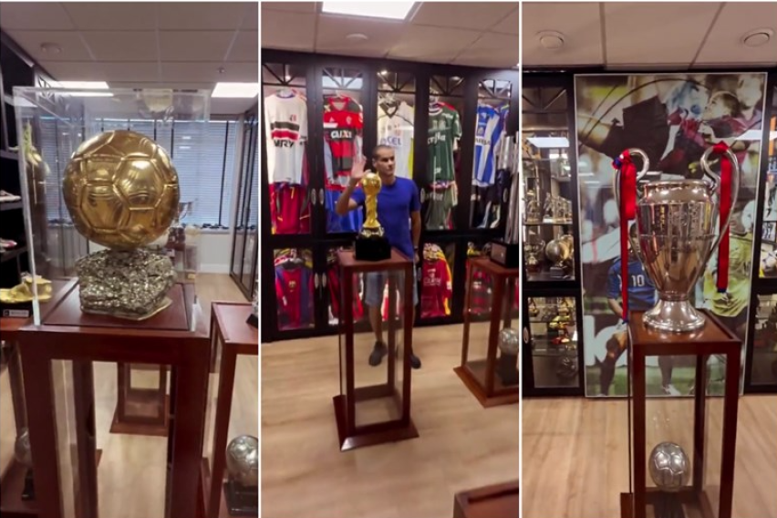 Легендарниот бразилски фудбалер Ривалдо на социјалните мрежи објави снимки од просторијата во која ги чува сите свои трофеи. Собата на Ривалдо изгледа како музеј посветен на неговата богата кариера. Во прв план се највредните трофеи – „Златната топка“ и пехарот од Светското првенство во 2002 година.