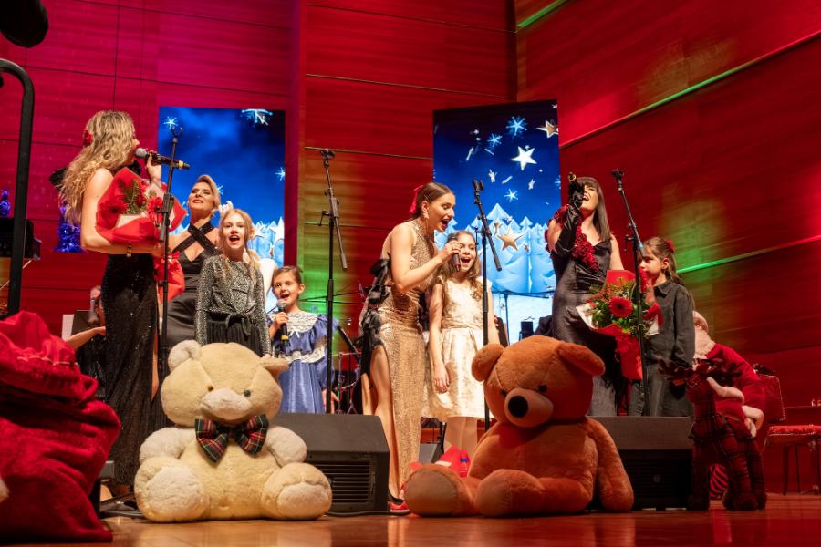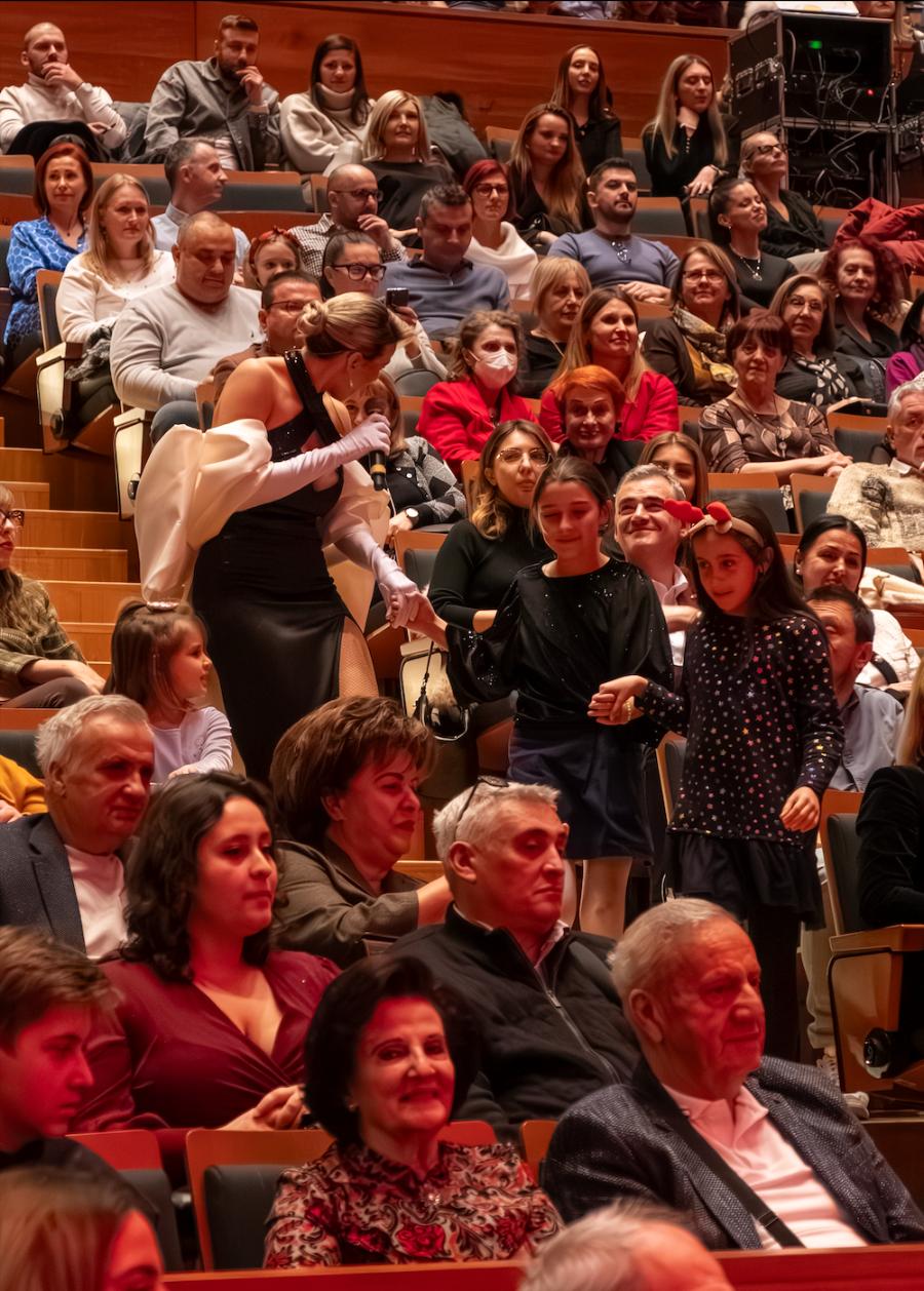 Вечерта доби и дополнителна сценска магија со појавувањето на Дедо Мраз, кој внесе ведрина и детска радост во салата. Особено впечатлив момент беше изведбата на новата божижна композиција „Нека трепка“, кога на сцената им се придружија девојчињата кои се појавуваат во видео-спотот - The little girlzz: Илина, Ангела, Мила и Ника, чиј настап донесе искрена емоција и силна симболика на празничната порака.