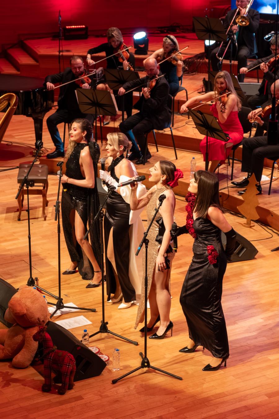 Една од најпрепознатливите македонски уметници, Сара Мејс, заедно со женскиот вокален квартет составен од Ана Петановска, Калина Велковска – Кали и Теа Богатинова, настапија во придружба на Божиќниот оркестар, под диригентската палка на Иван Еминовиќ. Со внимателно обликувани аранжмани и впечатлива вокална усогласеност, концертот понуди современа изведба на познатите божиќните нумери и создаде богата, топла звучна слика што целосно ја исполни концертната сала.