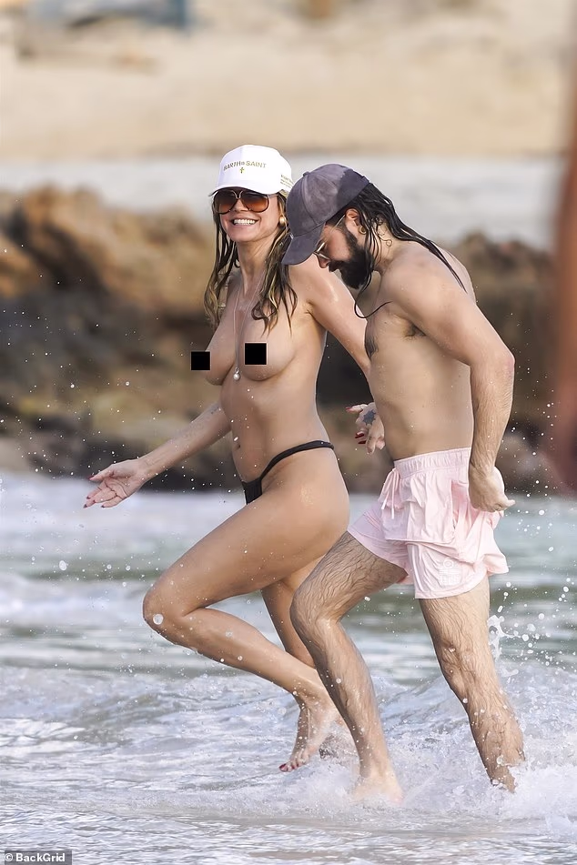 Пиво во рака, качкет и танга. Хајди Клум во топлес издание не е никаква новост, а и овојпат одлучила да го носи само долниот дел од костимот за капење додека уживала на плажа со сопругот Том Каулиц.