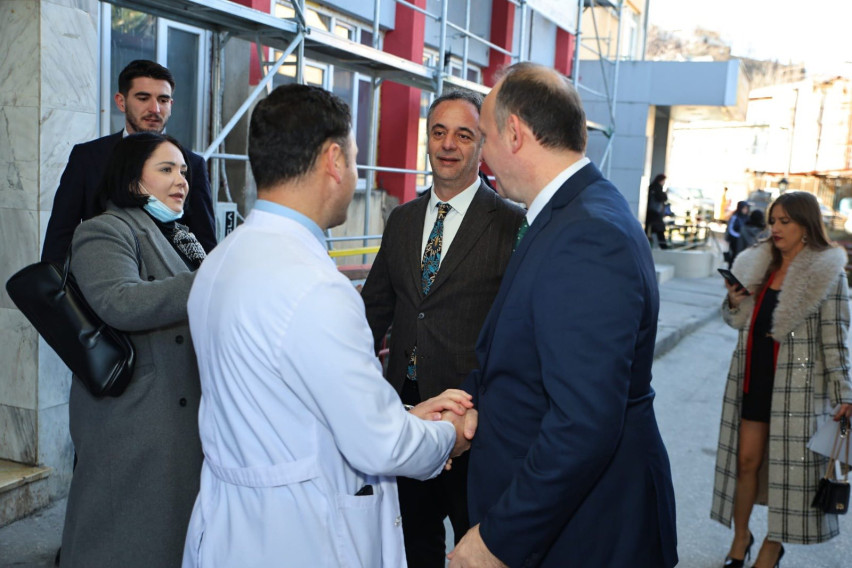 Министерот за здравство Азир Алиу, заедно со заменик министерот Јовица Андовски и претседателот на Собранието, Африм Гаши, денеска ја посетија и Клиниката за детски болести.
