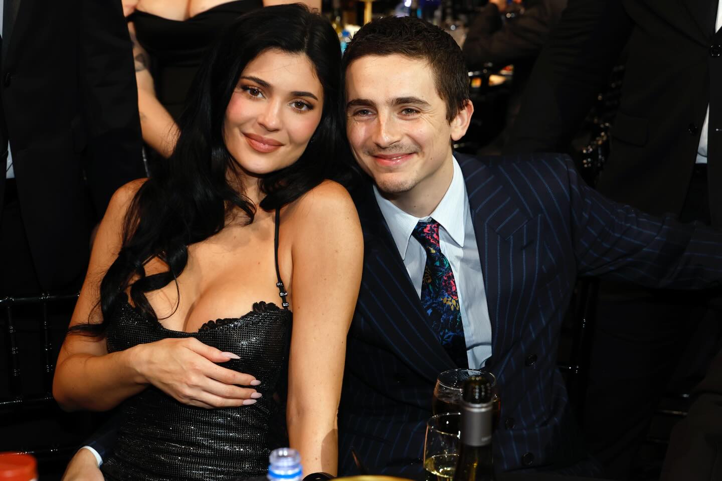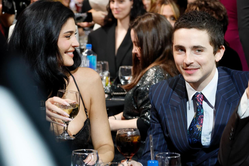 За оваа пригода, Шаламе избрал модерен пругав костум и шарена вратоврска, додека Џенер носела тесен црн фустан со тантела од страните.