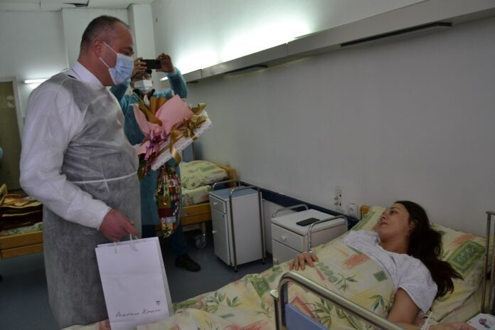 Градоначалникот на Општина Кочани Владко Грозданов денеска го посети Гинеколошко-акушерското одделение во Општа болница – Кочани, каде што со д-р Илчо Атанасовски, којшто го изврши породувањето и со директорката на болницата Катерина Мирчовска-Паниќ ѝ ја честитаа рожбата на мајката.