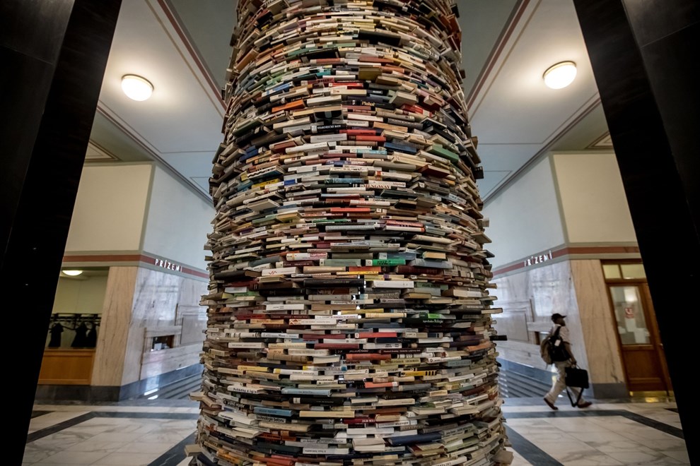 „Idiom“, дело на словачкиот уметник Матеј Крен, е цилиндрична кула од 8.000 книги, со влез во форма на солза и огледала на врвот и на дното, кои создаваат впечаток на бесконечен тунел. Градската библиотека го поставила во фоајето во 1998 година, каде што делото мирно стоело до пред три години, кога одеднаш станало хит на социјалните мрежи.