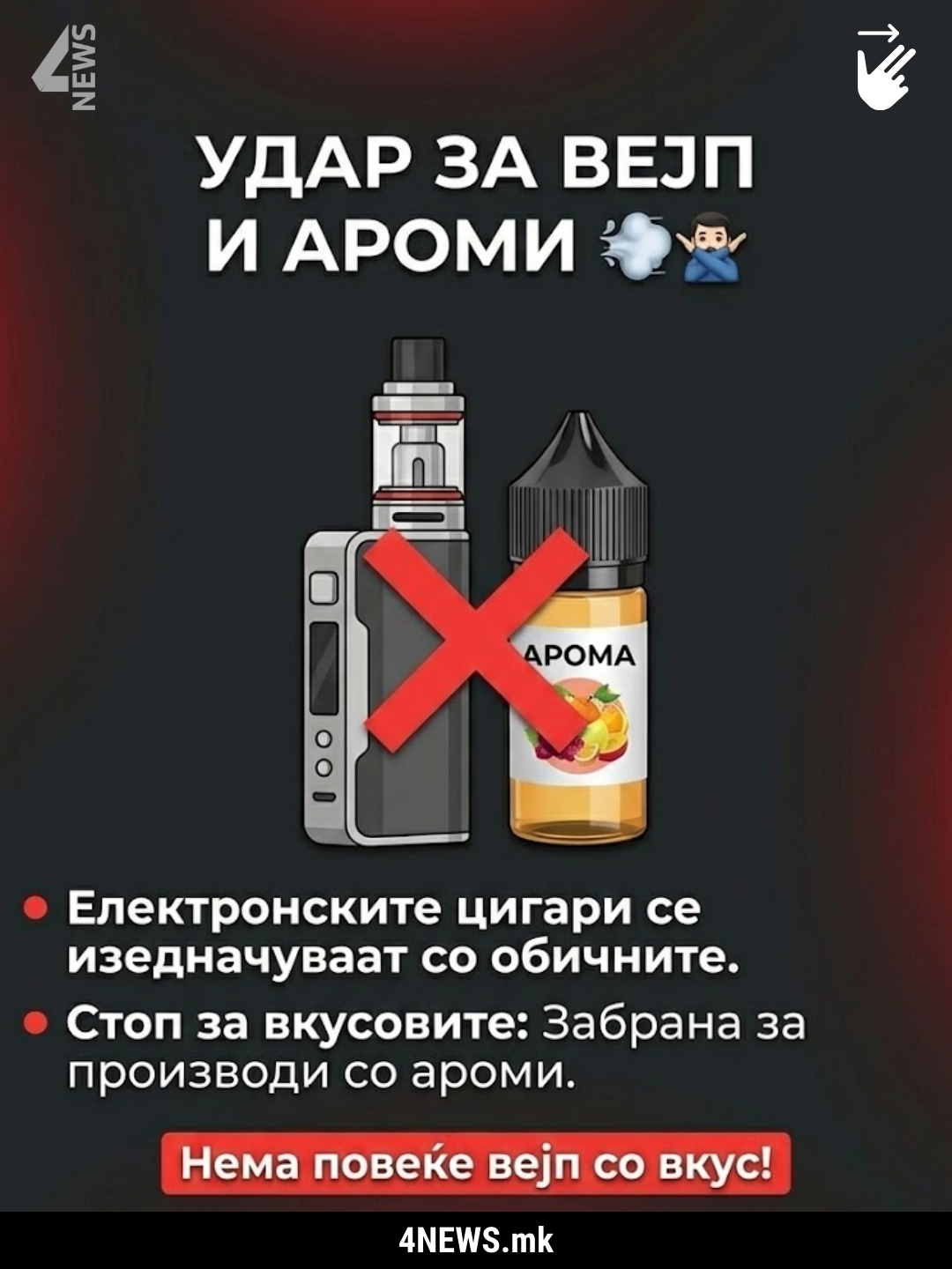 Новите законски решенија не прават разлика меѓу класичните тутунски производи и современите алтернативи. Истите ограничувања ќе важат и за електронските цигари и за вејп-уредите. Особено ригорозна е мерката што предвидува целосна забрана за производство, увоз и продажба на тутунски и никотински производи со додадени ароми и вкусови – сегмент кој, според здравствените власти, е најпривлечен за младата популација.