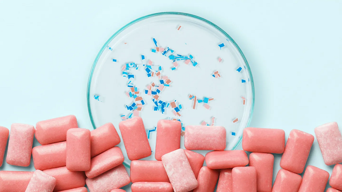 Еден од неочекуваните извори е џвакањето гуми. Поголемиот дел од комерцијалните гуми се направени од синтетичка гумена база (комбинација од пластика и гума) во која се додаваат ароми и засладувачи. За време на џвакањето, оваа база ослободува микро-пластични честички. Истражувањата покажуваат дека еден грам гума може да ослободи и до 637 честички микро-пластика, а најголемиот дел се ослободуваат во првите неколку минути.