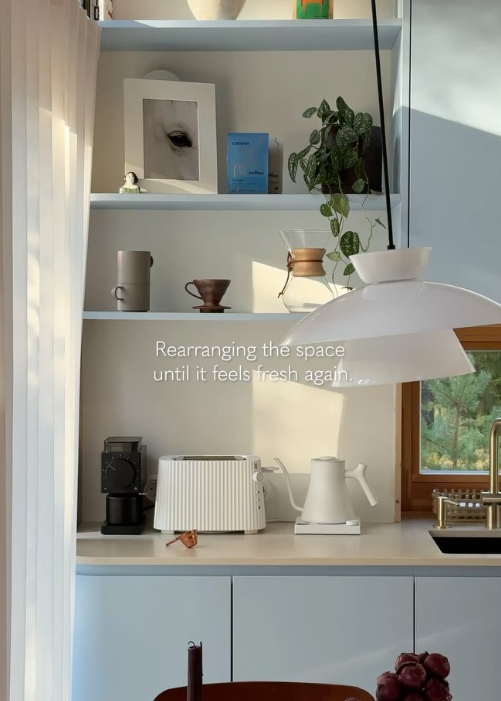Сѐ дизајнирала сама, без формално образование. Денес ги забележува грешките, но не ги доживува негативно затоа што како што вели, просторот искрено ја одржува неа во тој момент, нејзините избори на материјали, бојата и облиците.