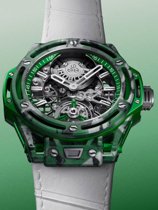 Тоа е лесен и цврст материјал со мермерен изглед, кој бил користен и во моделот „Big Bang Unico Novak Djokovic“ од 2024 година.