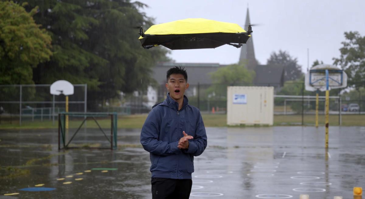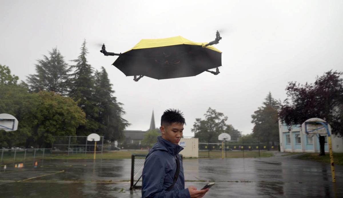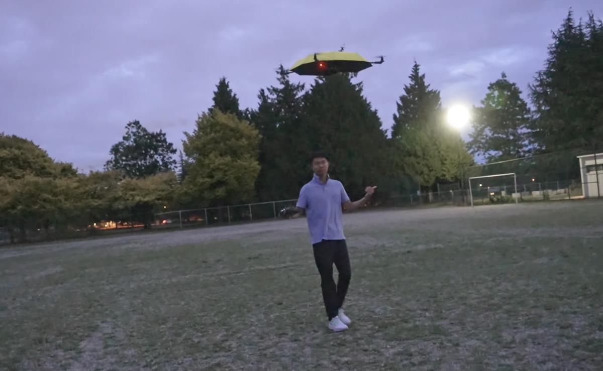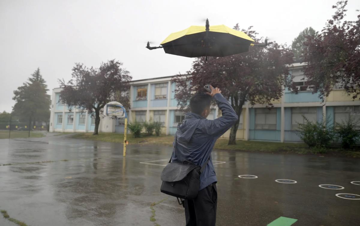Иновативниот дрон-чадор лебди над корисникот и автоматски го штити од дожд, спојувајќи технологија и практичност на единствен начин.