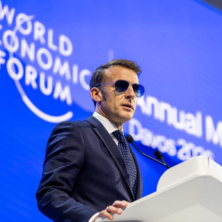 Очилата за сонце не само што го привлекоа вниманието кон говорот на Макрон, туку дадоа и впечаток на француски пилот на борбен авион од филмот „Топ Ган“, дополнително засилувајќи ја сериозноста на неговата порака.