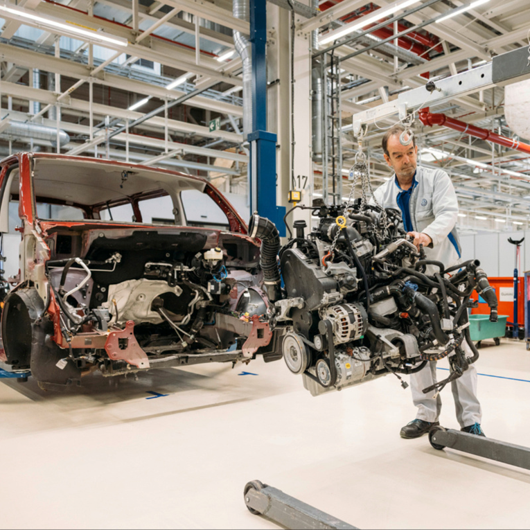 Во првата фаза во Цвикау систематски се расклопуваат возила за да се извлечат вредни суровини и употребливи делови. Целта е да се постават стандарди што подоцна ќе се применуваат во сите други фабрики на „Volkswagen“ ширум светот.