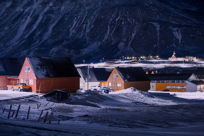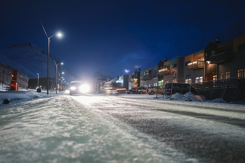 Во Лонгјирбиен на Свалбард моментално трае поларната ноќ. Тоа е природен феномен што се појавува северно од Арктичкиот круг и јужно од Антарктичкиот круг, за време на кој сонцето воопшто не се издигнува над хоризонтот. Токму затоа владее целосен мрак 24 часа во денот.