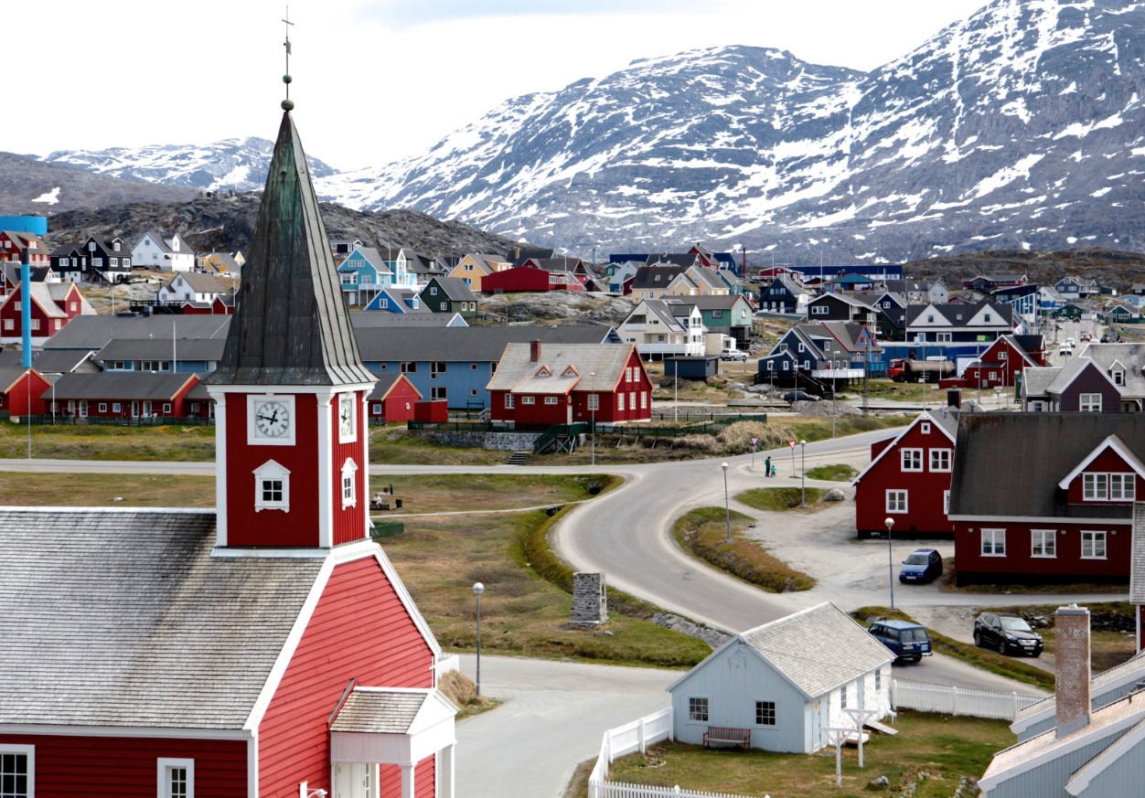 На само неколку минути пешачење, погледот драматично се менува. Модерните станбени блокови од стакло и челик, првиот трговски центар во Гренланд отворен во 2012 година и културниот центар Катуак, чија брановидна дрвена фасада е инспирирана од поларна светлина, сведочат за забрзаниот развој. Оваа архитектонска шизофренија е одраз на подлабок културен судир.