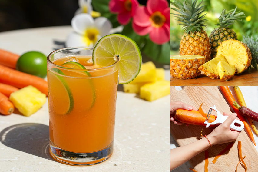 Ананасот содржи бромелаин, ензим кој може да помогне во разградувањето на протеините, краставицата придонесува за хидратација, додека морковот обезбедува бета-каротен и придонесува за внес на антиоксиданти. Лиметата дава освежителна нота и дополнителен витамин Ц.
