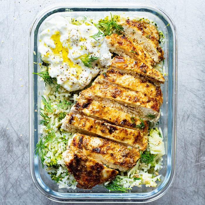 Пример за таков ручек може да вклучува печено пилешко или лосос, киноа или леќа, печен зеленчук, зелен лиснат зеленчук, маслиново масло и мала порција ферментирана храна како кисела зелка, јогурт или кефир.