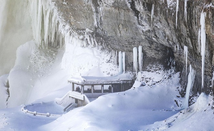 Нијагарините водопади, кои се протегаат долж границата меѓу Соединетите Американски Држави и Канада, делумно се замрзнаа поради ниските температури што во овој регион деновиве се спуштаат и до околу минус 11 степени Целзиусови, пишува „Глобал њуз“.