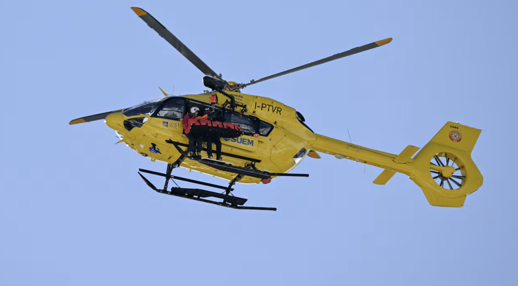 [Линдзи Вон од Соединетите Американски Држави е евакуирана со хеликоптер по пад за време на женската трка во алпски спуст на Зимските олимписки игри 2026 во Кортина д’Ампецо, Италија, недела, 8 февруари 2026 година. ФОТО: АП]