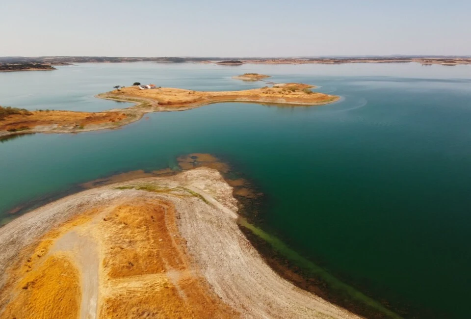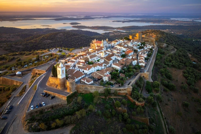 Селото Монсараз е сместено на брег со поглед на најголемото вештачко езеро во Европа