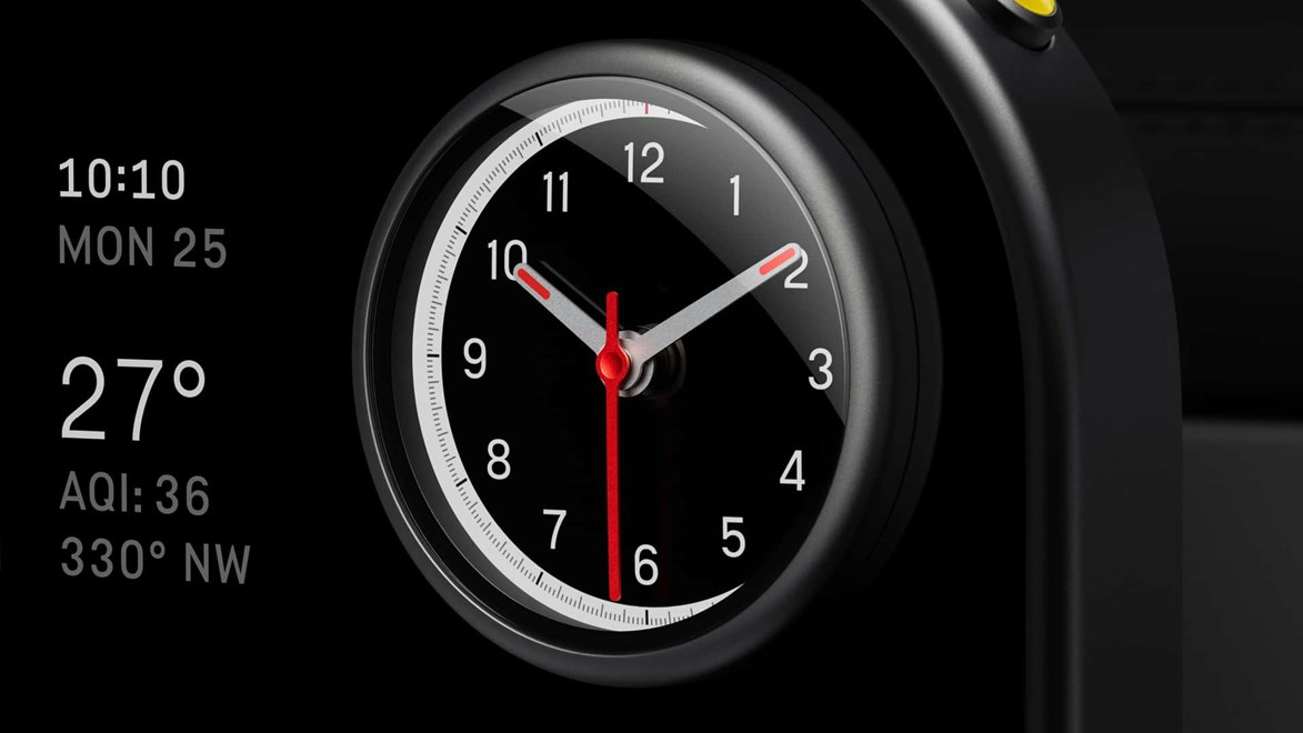Централниот екран може да се ротира кон возачот или совозачот за полесно користење. Во долниот дел има физички копчиња за поставките на вентилацијата. Посебност е отвор во екранот што открива механички модул со четири режими: часовник, хронограф, компас и „launch control“.
