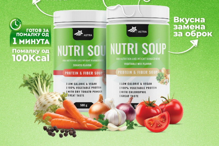 Функционален вегански производ кој му помогне на телото да се ослободи од вишокот течности, да се намали апетитот и да се воспостави чувство на леснотија и контрола врз оброците. Претставува силна поддршка за јакнење на имунитетот, а по само 3 до 4 недели од редовната употреба на Nutri Soup, се чувствува подобрување во дигестивниот систем, намалување на гасови и надуеност. Со користење на Nutri Soup како замена на 1–2 оброка дневно се намалува и телесната тежина од 4–6 кг.