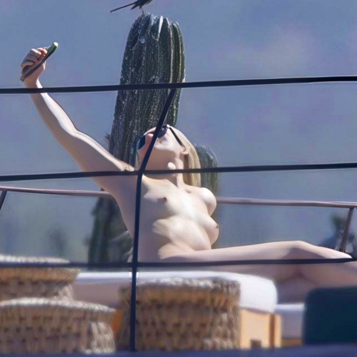 Парот бил фатен додека уживале во сонцето во Лос Кабос, а моментот стана интригантен кога актерката го соблекла горниот дел од бикинито и вежбала во топлес издание. По вежбите за истегнување, актерката исто така во топлес направила и селфи фотографии.
