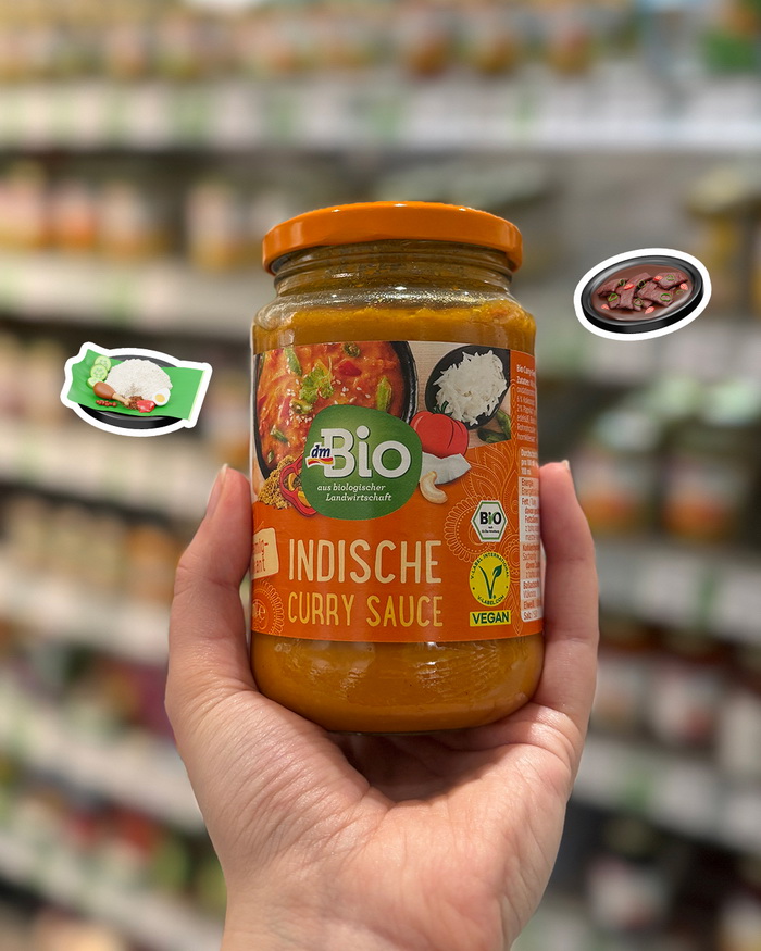За љубителите на зачинети и кремасти јадења, dmBio индискиот кари сос нуди балансиран, кремасто-пикантен вкус со индиски зачини, домати, пиперки, индиски ореви, кокос и чили. Совршен е во комбинација со ориз и зеленчук, а за кратко време создава оброк со богат и интензивен карактер.