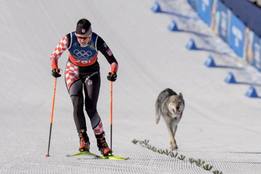 На Зимските олимписки игри се случуваат најразлични ситуации, па така во еден момент присутните помислиле дека волк влетал на патеката. Сè се случило за време на трка во женска конкуренција во крос-кантри скијање, кога едно животно се појавило зад скијачките.